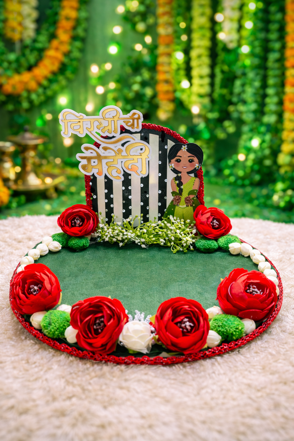Lightweight yet sturdy, this platter is easy to carry and reusable for multiple occasions. Its festive look blends beautifully with traditional as well as modern mehendi themes, making it suitable for home functions, professional event dΓ©cor, and wedding planners.